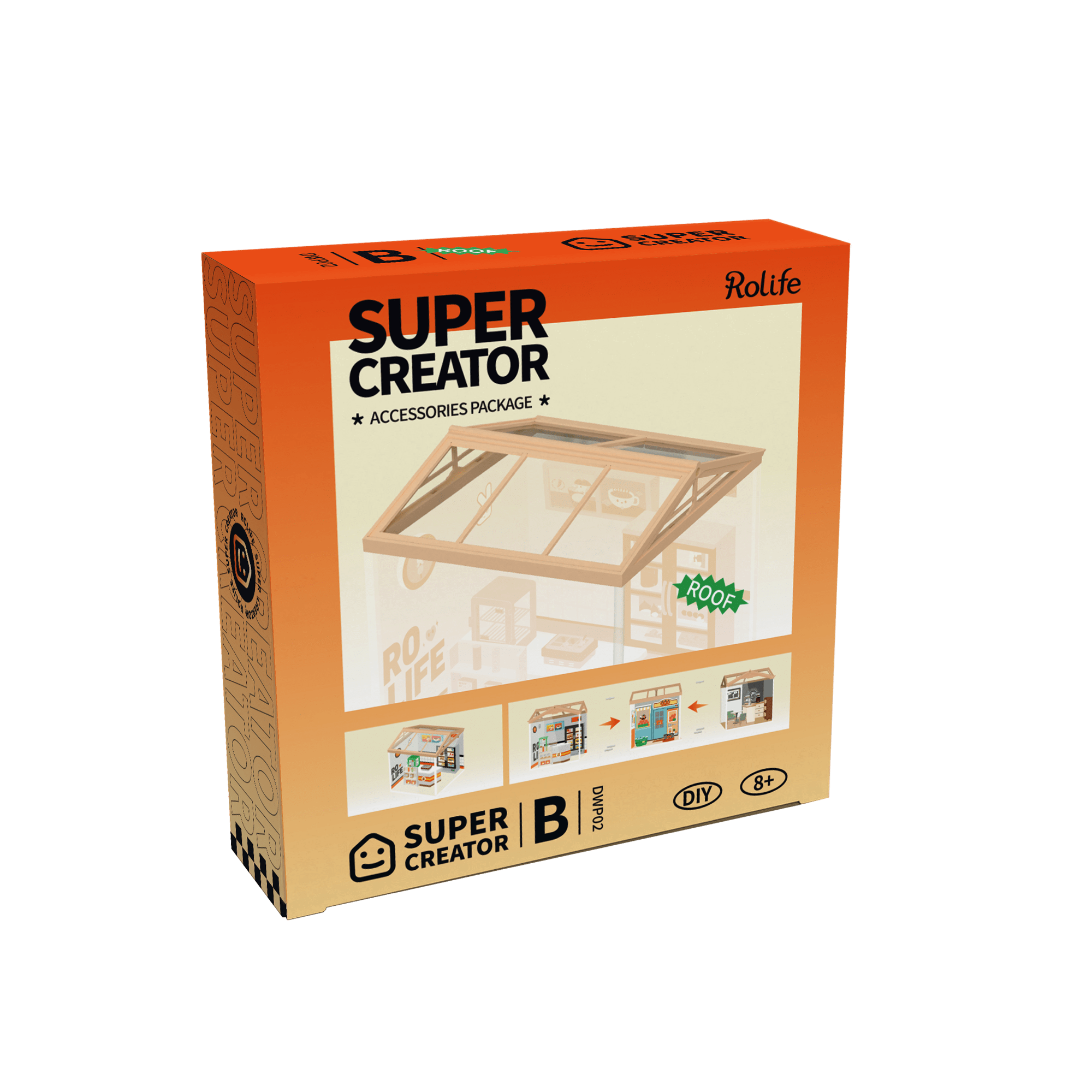 Le kit comprend un toit pour la maison miniature de la série DW. La porte anti-poussière (DWP05) peut également être achetée séparément.