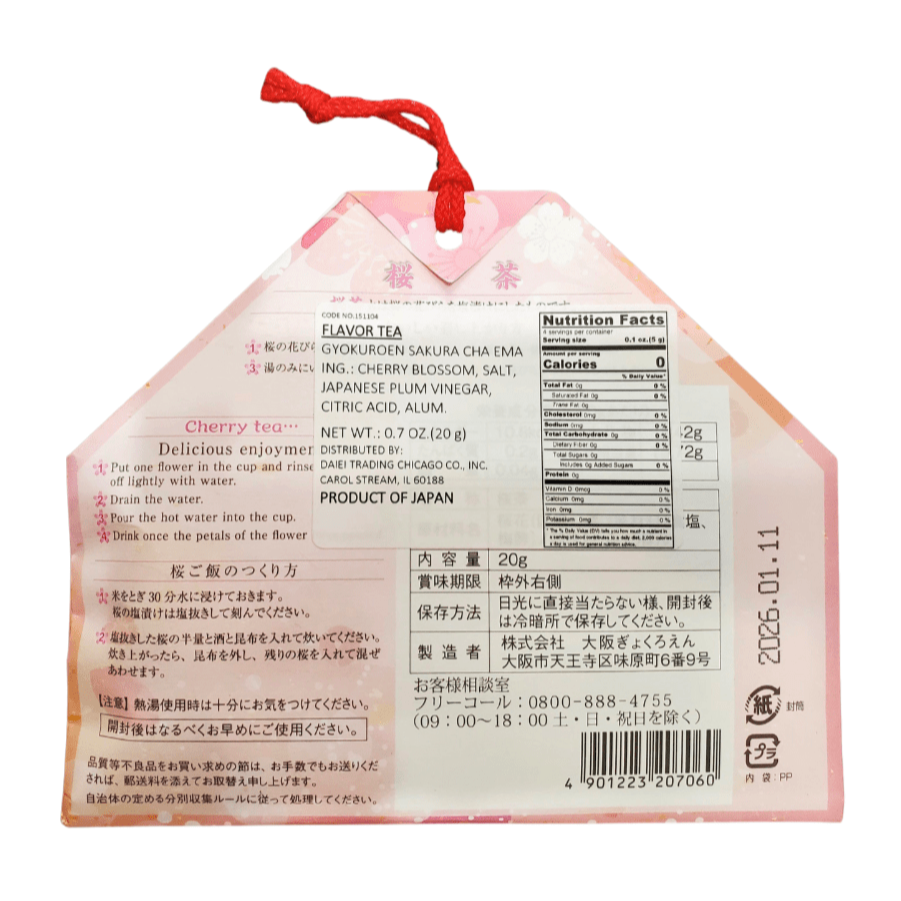 玉露園櫻花茶繪馬。 (0.7 盎司)日本產品。