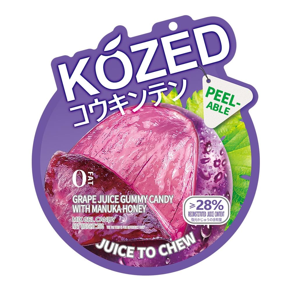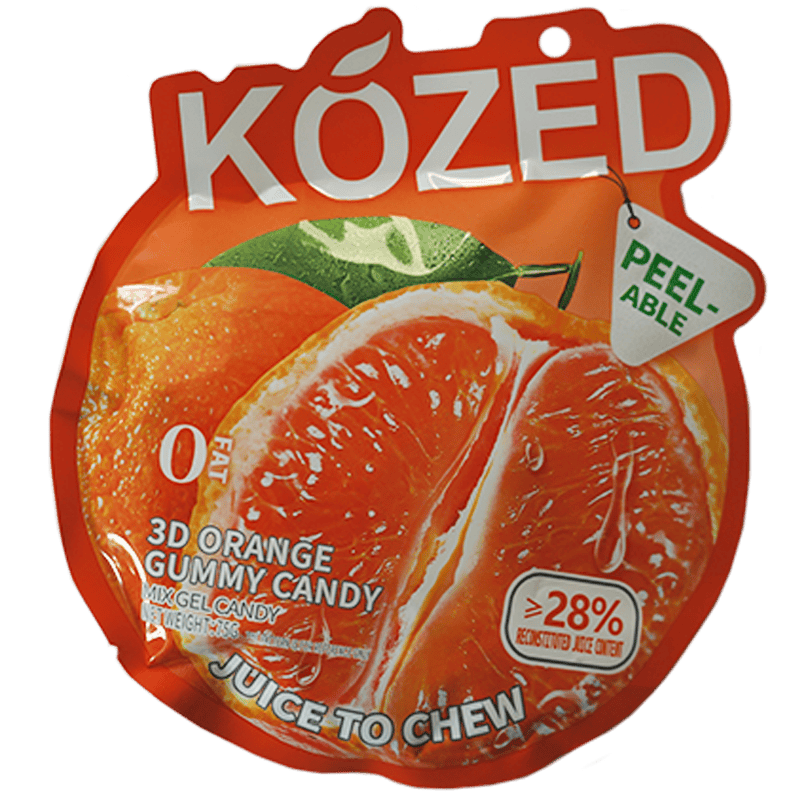 Kozed Peelable Gummy Candies combine real fruit juice—28%—with a soft, peel-away texture that sets them apart from standard gummies. Available in Grape and Orange, these fruity treats offer genuine flavor depth and an interactive eating experience that appeals to candy connoisseurs seeking quality ingredients and playful design.