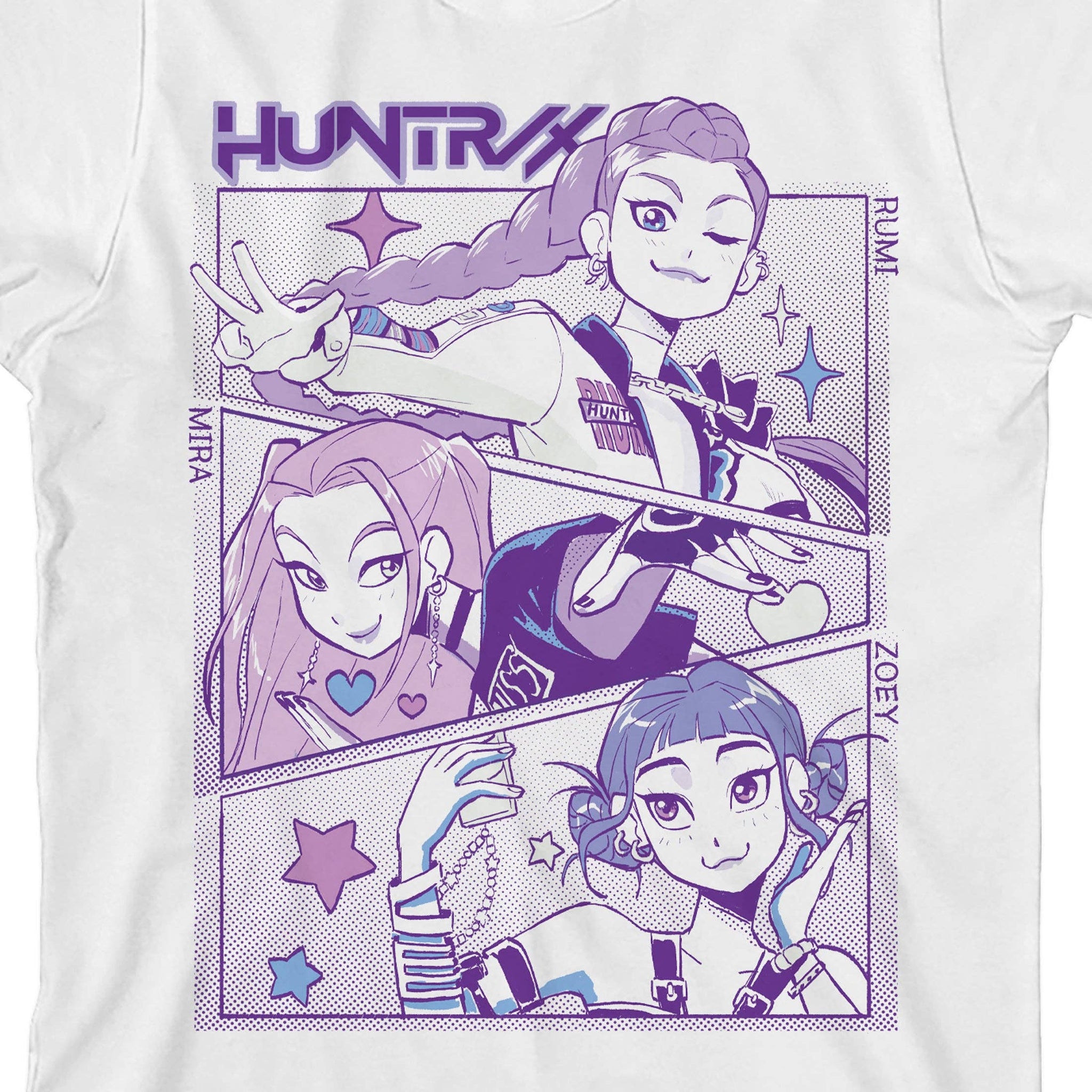 KPop Demon Hunters Panel Art Huntrix Youth White Crew Neck Short Sleeve T-shirt